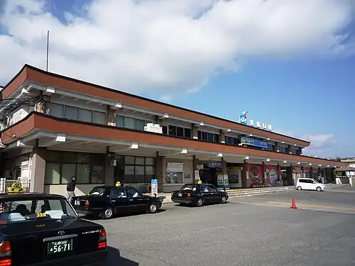 Miyajimaguchi Station (宮島口駅, Miyajimaguchi-eki) is a passenger railway station located in the city of Hatsukaichi, Hiroshima Prefecture, Japan. It is operated by the West Japan Railway Company (JR West).[1] From the pier near the station there are ferry services for Miyajima (Itsukushima) by JR Miyajima Ferry and Miyajima Matsudai Kisen.
