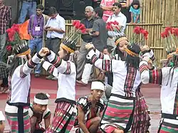 Chai is the dance performed during the Chapchar Kut festival. Boys and girls stand in a circle alternately with their hands on each other's shoulders. Inside the circle, musicians such as drummers and horn players would stand and play a rhythm to dance on.[37] The Chai song is sung along the performance.[38][40]