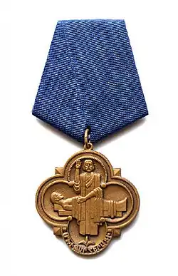 Mkhitar Heratsi Medal is awarded for services to the development of healthcare in Armenia, high professionalism, practical work, as well as for significant philanthropic activities. The Mkhitar Heratsi Medal is awarded to civilian and military doctors, junior and middle medical personnel, pharmacist, as well as philanthropists and other persons. The law on the Mkhitar Heratsi Medal has been in effect since July 26, 1993. It is named after Mkhitar Heratsi.