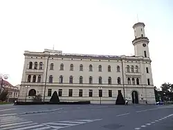 The Old City Hall in the historic centre is a Renaissance house built in 1554–1559. It is decorated with ornamental and figurative sgraffiti. In the second half of the 19th century and in 1939–1941, the building was reconstructed and other wings were completed. It has two towers, the higher of them was built in 1779 and is open to the public as a lookout tower. The nearby New City Hall was built in the neo-Romanesque style in 1865–1867 and still serves its original purpose.[17]