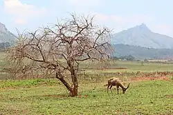 The sanctuary serves as a headquarters for the Big Game Parks including Mlilwane's sister reserves Hlane Royal National Park and Mkhaya Game Reserve. The Sanctuary covers 4,560 hectares in the Ezulwini Valley or "Valley of Heaven". Formerly a farming and tin mining area, the area has been rehabilitated and is now Eswatini's most frequently visited reserve. Abundant wildlife grace the plains. The southern section is predominately open grassland plains with middleveld vegetation, stretching up onto Nyonyane Mountain. Tourist activities are concentrated in the southern section which can be explored by foot, horseback, mountain bikes or vehicle. The northern section includes one of the highest points in the area at Luphohlo. Only guided trails enter this part of the sanctuary. Mlilwane means Little Fire, a reference to the many fires started by lightning strikes on Mlilwane Hill.[1]