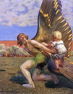 The most notable representatives of Polish symbolism are Władysław Podkowiński (1866–1899) and Jacek Malczewski (1854–1929). The latter placed his research in a national current and was particularly interested in the relationship between art and artist. He addressed the theme of the creator's duty in relation to the national past and reflected on the influence of art in real life. For nearly half a century, Malczewski developed cycles and series, mixing his own symbols with those of tradition, whose meaning he changed with new compositions.