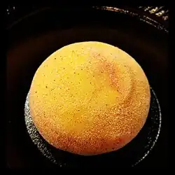 Mochi ice cream is a small, round confection consisting of a soft, pounded sticky rice dumpling (mochi) formed around an ice cream filling.[2] The ice cream adds flavor and creaminess to the confectionery while the mochi adds sweetness and texture.[2] The traditional ice cream flavors used are vanilla, chocolate and strawberry. Other flavors, such as Kona coffee, plum wine, green tea, and red bean, are also widely used.[3] Mochi can also be flavored as a complement to the ice cream filling. When making mochi, it is dusted with either potato or cornstarch to keep it from caking while being formed and handled.[2][4]