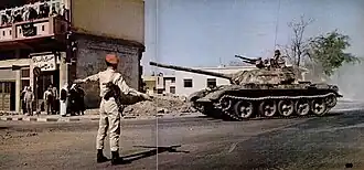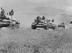 On 18 September 1970, during the events of Black September in Jordan, Syria tried to intervene on behalf of the Palestinian guerrillas. Hafez al-Assad sent in armored forces equivalent to a brigade, with tanks, some of them allegedly hastily rebranded from the regular Syrian army for the purpose. Other Syrian units were the 5th Infantry Division and Commandos. On 21 September, the Syrian 5th Division broke through the defenses of the Jordanian 40th Armoured Brigade, and pushed it back off the ar-Ramtha crossroads. On 22 September, the Royal Jordanian Air Force began attacking Syrian forces, which were badly battered as a result. The constant airstrikes broke the Syrian force, and on the late afternoon of 22 September, the 5th Division began to retreat.[8] The swift Syrian withdrawal was a severe blow to Palestinian guerillas. Jordanian armored forces steadily pounded their headquarters in Amman, and threatened to break them in other regions of the Kingdom as well. Eventually, the Palestinian factions agreed to a cease-fire. King Hussein and Yasser Arafat attended the meeting of the Arab League in Cairo, where the hostilities briefly ended. The Jordanian-Palestinian Civil War shortly resumed, but without Syrian intervention.