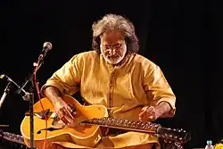The first of these was a mix of the sarod, veena and surbahar, developed in 1948 by Radhika Mohan Maitra.[1][2] In 1949, Thakur Jaidev Singh, the then chief producer of All India Radio, named the instrument 'Mohan veena' after him.[3] Pandit Maitra performed 22 national programs and several AIR recordings with the instrument before his untimely death in 1981. These recordings are treasures of AIR archives and now available in public domain.[4]