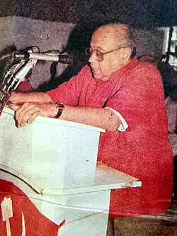 Mohit Sen stood for collaboration with Congress for fighting against imperialist forces. When the CPI split, and gave rise to a new party, the Communist Party of India, Sen remained with the original CPI, under chairmanship of S.A. Dange, which was following nationalist line. He became a national council member of CPI in 1966 and was elected to party central executive committee in 1971. Sen parted ways with the CPI, following its anti-Congress stand, in 1978, following Indira Gandhi's emergency and subsequent failure in the election. In 1985, Sen joined the Indian Communist Party and when it merged with the All India Communist Party in 1988 to become United Communist Party of India, Sen became its general secretary, a post he held for 15 years till his death. He was married to Vanaja Iyengar, a mathematician, Padma Shri awardee and founder vice chancellor of Sri Padmavati Mahila Visvavidyalayam[4] and at the time of his death, Sen, 74, was a widower and had no children.[5]