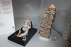 Tribosphenic molars were present in the direct ancestors of all three living mammal groups, but it was most likely not ancestral to mammals as a whole. Many paleontologists argue that it developed independently in monotremes (from australosphenidans), rather than being inherited from a common ancestor that they share with marsupials and placentals (from boreosphenidans); this idea still has some critics.[4] For example, the dentition of the Early Cretaceous monotreme Steropodon is similar to those of Peramus and dryolestoids, which suggests that monotremes are related to some pre-tribosphenic mammals,[5] but, on the other hand, the status of neither of these two groups is well-established.