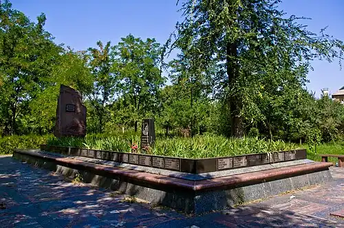 Troops garrisoned in Chișinău were also targeted by partisan attacks, beginning when Valerian Trikolich threw a grenade at a Romanian battery in Pushkin Park.[16] Sabotage was also reported during the early days of occupation, with workers burying the industrial equipment at Chișinău ceramic tiles factory, or setting fire to the city's soap factory.[18] Some groups were formed that were largely independent of the PCM—groups espousing Soviet patriotism, and sometimes manned by Komsomol youth, were established at Berlinți, Beleavinți, and Sîngerei, while Jews in Briceni formed a self-defense unit which prevented a pogrom. The latter group, comprising 47 people, was involved in a shootout with Romanian troops on 22 July.[19]
