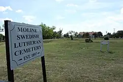 The Moline Swedish Lutheran Cemetery was established in Elroy, Texas in 1897. It was originally an annex to the Gethsemane Lutheran Church of Austin, Texas. The Swedish population began to move away from the area in the 1930s, and by the 1950s, the congregation was too small to sustain the church. The church was dismantled after closing in 1955. The remaining congregation became the charter members of the Prince of Peace Lutheran Church in Austin, Texas[1] and many of its members became stewards of the site.