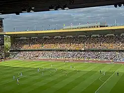 This phase, costing an estimated £18 million, was carried out by contractors the Buckingham Group.[27] By September 2011 the lower tier was opened to fans, permitting a temporary stadium capacity of 27,828.[28][29] The stand was fully opened on 11 August 2012 for the club's first fixture of the 2012–13 season,[30] creating a new official stadium capacity of 31,700.
