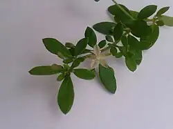 Mollugo cerviana is a species of flowering plant known by the common name threadstem carpetweed. It can be found on most continents growing as a weed in many types of dry, sandy habitat types. It is an annual herb producing a thin, erect stem up to about 20 centimeters tall. The narrow, waxy leaves are up to 1.5 centimeters long, linear in shape, and arranged in whorls around the stem. The inflorescence is a loose umbel of tiny flowers each made up of whitish, petal-like sepals less than 2 millimeters long, and no true petals.