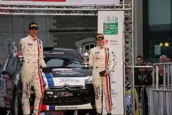While driving in the British Rally Championship, she was noticed by Pirelli and World Racing Championship Academy officials.[11] She was then invited to participate in the Pirelli Star Driver Shootout where she competed against sixteen of the top young drivers in rally racing from throughout the world. Based on her performance at the Shootout, she was awarded one of only six scholarships to the FIA World Rally Championship Academy, which allowed her to compete in the World Rally Championship in 2011.[13] The scholarship allowed her to participate in six events for the World Rally Championship with all of her racing expenses paid.[11] She finished the final race of the championship at the Wales Rally Great Britain with a stage win, also winning the Richard Burns Trophy for the season.[14]