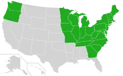 The species is native to eastern North America from Maine west to Ontario and Michigan, and south to northern Georgia, and introduced in other states farther west.[3][4][5]
