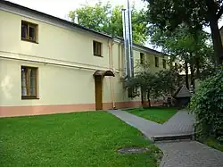 Ultimately, Hegumeness Nina obtained permission for the nuns to move to the buildings of the former parish school near another Orthodox church in Vilnius (St. Alexander Nevsky), located in the Naujininkai district.[10] On 1 May 1937, the Synod of Bishops of the Polish Orthodox Church merged the two female monastic communities according to previous plans, and Metropolitan Dionizy obtained permission to build a larger residential facility for the 32 nuns of the monastery and to conduct fundraising for this purpose. Up to that time, the nuns' only means of support were the manual labor they performed and the voluntary contributions of the faithful.[10] With the financial assistance of the faithful, the nuns carried out a general renovation of the church, adapted the former school buildings for their purposes, and established an orchard and garden around the buildings.[11] At the time of the merger of the monasteries, the Synod of the Polish Orthodox Church considered naming the new community after the Holy Trinity; however, it was ultimately decided to adopt Mary Magdalene as its patron saint.[10]