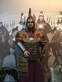 One nephew of Qutula Khan, named Yesugei, had some success fighting against the Tatars,[21] and was a great friend of Toghrul, the khan of the Kerait.[22] With his wife Hö'elün, whom he had abducted from her previous Merkit husband, Yesugei had several children, including a boy named Temüjin (the future Genghis Khan) who was born c. 1162.[23][b]