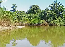 The Monkey River drains much of southern Belize through the Bladen (southern) Branch, which includes tributaries from a part of southern Guatemala and the southern slopes of the Maya Mountains in Belize, containing the ancient Mayan sites of Nim Li Punit and Lubaantun. The (northern) Swasey Branch of the Monkey River rises in the East Basin of the Cockscomb Basin Wildlife Sanctuary, a wilderness area set aside for jaguar preservation.[2] During the rainy season, the Monkey River manifests considerable turbidity.