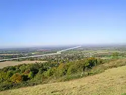 ![]() Monks Risborough looking north from near the top of Whiteleaf Hill (The white line shows very approximately the western boundary with Princes Risborough beyond | |