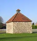 In the field (now a recreation ground) to the west of the church is a 16th-century pigeon house, where pigeons were bred for food. It has a curious northern doorway, which may have been brought from elsewhere.[33] There are nesting places ('pigeon holes') for 216 pigeons.[34] In later years it formed part of Place Farm and was used as a shelter for cattle. At the end of the 20th century it was cleaned out, repaired and secured.