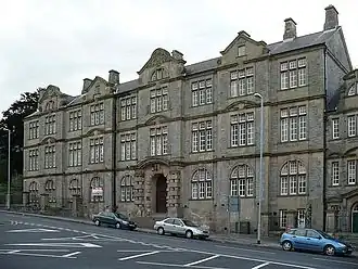 The current Monmouthshire County Council is the second body of that name. The first Monmouthshire County Council was created in 1889 under the Local Government Act 1888, taking over the local government functions of the quarter sessions.[4] That council was based in Newport, initially meeting at the town hall and later building itself headquarters at Shire Hall in 1902.[5][6] In 1891, Newport was made a county borough, removing it from the administrative area of the county council, although the council continued to be based there.