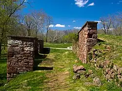 Like at Whites Ferry, a granary was built here, having three storage bays, two passageways for the boats, and only one story.[2] The remains of the granary are next to the parking lot.