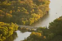The Monocacy Aqueduct — or C&O Canal Aqueduct No. 2 — is the largest aqueduct on the Chesapeake and Ohio Canal, crossing the Monocacy River just before it empties into the Potomac River in Frederick County, Maryland, USA. The 438 foot (133.5 m) aqueduct was built by three separate contractors between 1829 and 1833 at a cost of US$127,900.