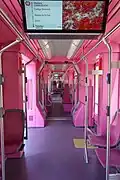 Monochrome Rose is a tram railcar produced by Stadler Rail and designed by the artist Pipilotti Rist in 2016. The color on the interior and exterior is a bright pink. Exceptions were made for the exterior of the doorframes,[1] since these need to be clearly recognizable for visually impaired persons due to the Disability Discrimination Act in Switzerland.[2] 250 kg of paint were used to coat the vehicle.[3]