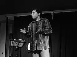 Oral interpretation, sometimes called dramatic reading or interpretative reading, is the oral staging of a work of literature, prose or poetry, by a person who reads rather than memorizes the material. Typically they are performed by solo artists who – unlike players in a monodrama – do not assume or tell the story through any one character, but do so instead with oral nuances to bring the story alive with their interpretation of how the creator of the piece intended the story to be told.[39][40]