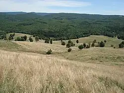 ![]() View from the slopes of Back Allegheny Mountain looking east. Visible are Allegheny Mountain (middle distance) and Shenandoah Mountain (far distance). The latter is in the George Washington National Forest of Virginia. | |