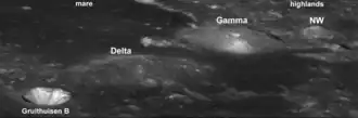 Mons Gruithuisen Gamma (γ) is a lunar dome[1] that lies to the north of the crater Gruithuisen at the western edge of the Mare Imbrium.