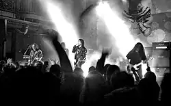 Monster Magnet is an American rock band formed in Red Bank, New Jersey, in 1989 by Dave Wyndorf (vocals and guitar), John McBain (guitar), and Tim Cronin (vocals and drums). The band has since undergone several lineup changes, with Wyndorf remaining the only constant member. Monster Magnet has released 11 studio albums to date and is best known for their 1990s hits "Negasonic Teenage Warhead" and "Space Lord." The band is also credited with developing and popularizing the stoner rock genre, along with Masters of Reality, Kyuss, Fu Manchu, and Sleep.[1][2][3]