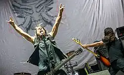 Monster Magnet is noted for having a "heavy and spacy sound."[25] They have been described as a "space-metal outfit [that] helped codify the stoner-rock template with their landmark efforts in the early 1990s."[26] The album Superjudge, according to Metal Injection, "helped forge a sound that crafted a band and a genre."[27] Their sound has been described as "heady heavy metal."[28] Monster Magnet is also regarded as space rock,[29] hard rock,[30] psychedelic rock,[31] garage rock[32] and as part of the first wave of alternative metal.[33] Their style is heavily influenced by 1970s space rock bands such as Hawkwind[34] and psychedelia.[33]