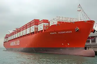 Monte Aconcagua is a container ship owned by A.P. Moller Singapore Pte. Ltd.[2] and operated by Maersk Line AS.[3] The 272-metre (892 ft) long ship was built at Daewoo Mangalia Heavy Industries[1] in Mangalia, Romania in 2008/2009. Originally owned by Monte Alegre GmbH & Co KG, a subsidiary of Hamburg Süd,[3] she has had two owners and been registered under two flags.