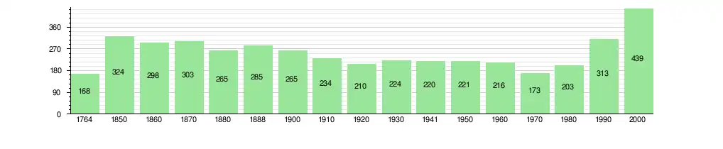 As of 2000, there were 160 private households in the municipality, and an average of 2.6 persons per household.[9] There were 41 households that consist of only one person and 10 households with five or more people. Out of a total of 164 households that answered this question, 25.0% were households made up of just one person. Of the rest of the households, there are 41 married couples without children, 67 married couples with children There were 7 single parents with a child or children. There were 4 households that were made up of unrelated people and 4 households that were made up of some sort of institution or another collective housing.[10]
