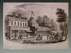 Montpellier Spa was initiated by Henry Thompson after springs were discovered on land he bought in 1801. The Spa buildings of 1817 were by George Allen Underwood. Thompson's son Pearson extensively developed the area and arranged for supporting entertainment for the spa facilities. He commissioned the distinctive Montpellier Rotunda by John Buonarotti Papworth as a pump room in 1825. There was a branch of Lloyds Bank from the early 1960s but The Ivy restaurant chain replaced Lloyds Bank in 2017. The interior of the Rotunda was used as a ballroom, graced by the presence of Arthur Wellesley, 1st Duke of Wellington and many of his distinguished contemporaries.[2]