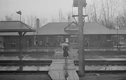 Montréal-Ouest station (French pronunciation: [mɔ̃ʁeal wɛst] ⓘ) is a commuter rail station in the Montreal borough of Notre-Dame-de-Grâce, adjacent to the border with the town of Montreal West, Quebec, Canada. It serves the Exo Vaudreuil-Hudson, Saint-Jérôme, and Candiac lines. Montréal-Ouest station is located in ARTM fare zone A,[2] and has 20 parking spaces.[1] It is the station where these three lines come together as one towards Lucien-L'Allier station.