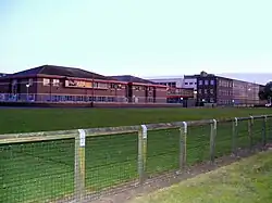 In 1955 plans were unveiled for new buildings to be added to the old Montrose Academy. Houses in the Academy Square were demolished and £250,000 set aside.[58] The 1961 extension, officially declared open on 23 October of that year, brought into use two three-storey blocks attached to the 1841 additions.[31] The major work of the last Extension in 1988-89 was the building of the East Wing, a two-storey block linked to the old West Wing by walkways.[59] It contains a number of teaching areas in addition to a Library, Communications Studio, Social Areas and Dining Room. In 2000, the 'Millenium Garden' was developed in the West Wing courtyard.[59]
