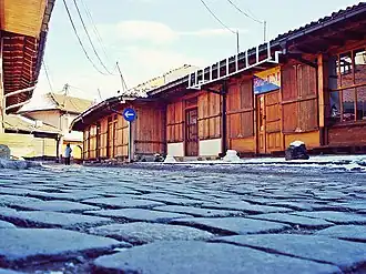 Citizen Urban Houses Bajmak are two houses located in the Marash Complex, on the left stream of Lumbardhi i Prizrenit river in Prizren.[25] They were built in the 18th century by local skillful craftsmen.[25] They were constructed with different materials as stone, clay, combinations of timber frames and mud bricks.[25] Their floors, stairs and roof construction are made by timber.[25] Roofs are covered with clay tiles, while the facades are plastered with mud.[25] The buildings comprise a ground floor and a first floor, and a garden.[25] In their interior it can be noted characteristic timber-lined ceilings and wooden cupboards.[25]