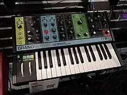 The Grandmother is an analog semi-modular subtractive, 32-key synthesizer[4] released by Moog Music Inc., incorporating circuits based on the Moog modular synthesizer Model 15 and the Minimoog.