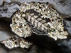 Mopalia muscosa, the mossy chiton, is a species of chiton, a polyplacophoran, an eight-plated marine mollusk. It is a northeastern Pacific species which occurs from British Columbia, Canada, to Baja California Mexico.[1][2][3]