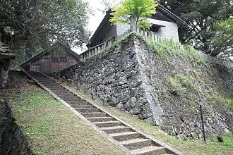 The second daimyō, Kurushima Michiharu changed the kanji of his surname from [来島] to [留島] in 1616. In 1663, the third daimyō, Kurushima Michiyo, sailed from the domain's enclave of Tonari on Beppu Bay on sankin-kōtai, when he was caught in a storm in the Seto Inland Sea off the coast of Yashiro Island, Suō Province. The boat carrying his younger brother Kurushima Michikata capsized, and all on board drowned. After this, Kurushima Michiyo distributed 1,000 koku to his surviving younger brother Kurushima Michisada and 500 koku to Kurushima Michito to establish cadet branches of his house. Throughout the Edo period, the Kurushuma clan continued to rule Mori Domain for twelve generations, without any transfer or reduction of territory. The production of alum from natural sulfur deposits at onsen in Beppu was a major source of income for the domain. The traditional alum manufacturing technique was designated as a National Important Intangible Folk Cultural Property in 2006.[4] The domain was an early supporter of the imperial side in the Boshin War, and were assigned to guard the abandoned daikansho at Hita. Following the Meiji restoration in 1871, it became Mori Prefecture due to the abolition of the han system, and was later incorporated into Ōita Prefecture. The Kinoshita clan was elevated to the kazoku peerage with the title of viscount in 1884.