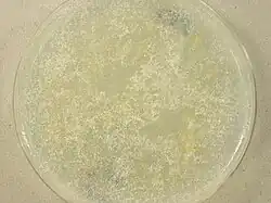 Mortierella polycephala is able to decompose chitin, liquify gelatin, and produce ethanol, oxalic acid and acetic acid if grown on a glucose medium.[2] Minimal growth is observed at 4 °C; 17 °C is optimal for growth, and growth is not observed above 27 °C.[7] In his experiments Dauphin exposed the fungus to extremely low temperature using liquid air. He observed that at −180 °C (−292.0 °F), the spores of M. polycephala did not germinate but were not killed and germinated once returned to ambient temperature. At 4 °C, the chlamydospores and spores could germinate after 3 days and the mycelium was not abundant, yielding this as the minimum temperature at which M. polycephala could grow. At 15 °C germination was the best for M. polycephala: it took 2 days and the mycelium was abundant, but not too crowded. From 22–27 °C mycelium generation started to occur too fast and too crowded; and at 32 °C conditions started to get unhealthy for germination. Finally at 45 °C and higher temperatures, the spores died and germination was not possible.[7] Dauphin also discussed the effects of the lack of oxygen in the fungus growth and concluded it was not a determining factor affecting germination.[7]