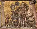 ![]() | Noah and the Animals Enter the Ark | Double scene, showing a certain modernity in the animals. Ponticelli attributed it to a 1483–1499 intervention by Alesso Baldovinetti, inspired by Paolo Uccello's frescoes Scenes from the Life of Noah in the Chiostro Verde of Santa Maria Novella. Roberto Longhi instead argued the mosaic was earlier than the fresco, with the latter drawing on the former. Soulier noted Egyptian or Syriac influence. |