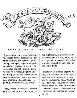![]() Moskovskiye Vedomosti, 4 July 1800 issue | |