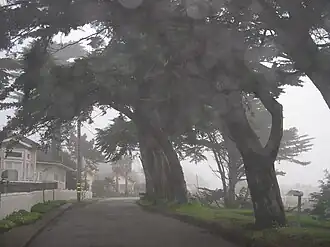 Because of the air currents off the Pacific Ocean, Moss Beach experiences above average fog levels, but also high quality ambient air. Situated along the coast of Moss Beach is the Fitzgerald Marine Reserve, a California designated area of Special Biological Significance. The reserve has a scenic blufftop trail through cypress groves overlooking the Pacific Ocean, historically significant tidepools, and a variety of marine animals and pelagic birds. The outcroppings along the beach are part of the Franciscan Complex.[14]