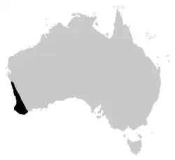 South-west corner of Western Australia,[2][6] from as far north as the Geraldton Sandplains,[7] to the Esperance Plains on the south coast of WA.[8] A population exists on Rottnest Island,[4] and the species is one of the most well known frogs found in urban Perth areas.[9]