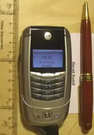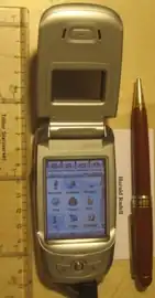 The Motorola A780 is a Linux-based smartphone. When the lid is closed, the phone appears like a traditional phone, with a keypad matrix and small display, actually a window to the larger display below the lid. When the lid is flipped open, a QVGA touch screen is revealed that can be used with fingers or a supplied stylus.