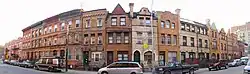 - The Mott Haven Historic District is located on Alexander Avenue between East 138th and East 141st Streets.[34] The district is primarily residential in character with four- and five-story row houses dating to the last half of the 19th century, and contains the row of brownstones known historically as Doctors' Row and Irish Fifth Avenue. It also has the 40th Precinct police station, the 1905 neo-renaissance Mott Haven Branch of the New York Public Library, and Saint Jerome's Roman Catholic Church.[35][36] It was listed on the National Register of Historic Places in 1980.[6]