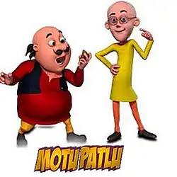 Motu Patlu is an Indian animated sitcom that premiered on Nickelodeon in India on 16 October 2012. This show is available in Hindi, Tamil, Telugu, Malayalam, Marathi, Kannada, Odia and Bengali. The series is adapted from the classic comic strip Lotpot.[5] It focuses on the misadventures of two friends, Motu and Patlu, landing in trouble and comical situations, later being rescued only by luck. It is one of the most popular kids' shows in India.[6]
