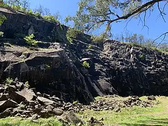 The quarries have created considerable scars in the side of Mount Gibraltar and are most visible from the southern/Bowral side. At close quarters the works cliffs are impressive with walls of up to 50 metres. The site contains rubble which is used from time to time for current projects, e.g. plinths for plaques and landscaping work within the reserve.[1]