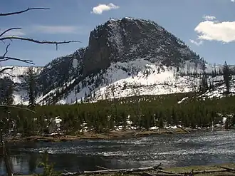 Mount Haynes el. 8,218 feet (2,505 m) is a prominent peak adjacent to the Madison River in Yellowstone National Park. The peak was named by then Yellowstone superintendent Horace Albright to honor Frank Jay Haynes (1853–1921), the first official photographer of the park.[3] Prior to being named Mount Haynes, the peak was unofficially called Mount Burley for D. E. Burley of the Union Pacific Railroad.[4] Today there is an interpretive overlook along the Madison River just opposite the peak.